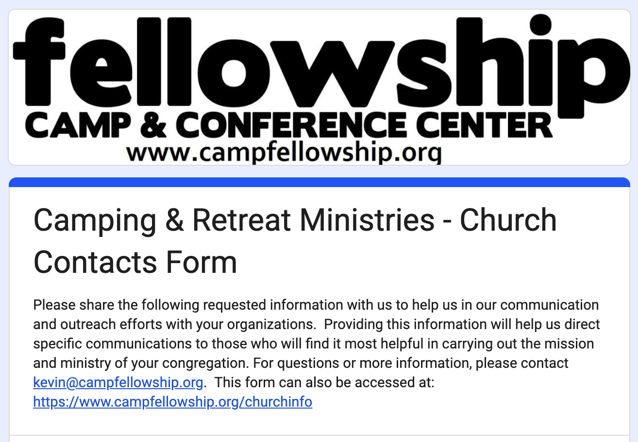 Please complete this form to share information with us to help us connect your congregation with camp and retreat ministry opportunities!
